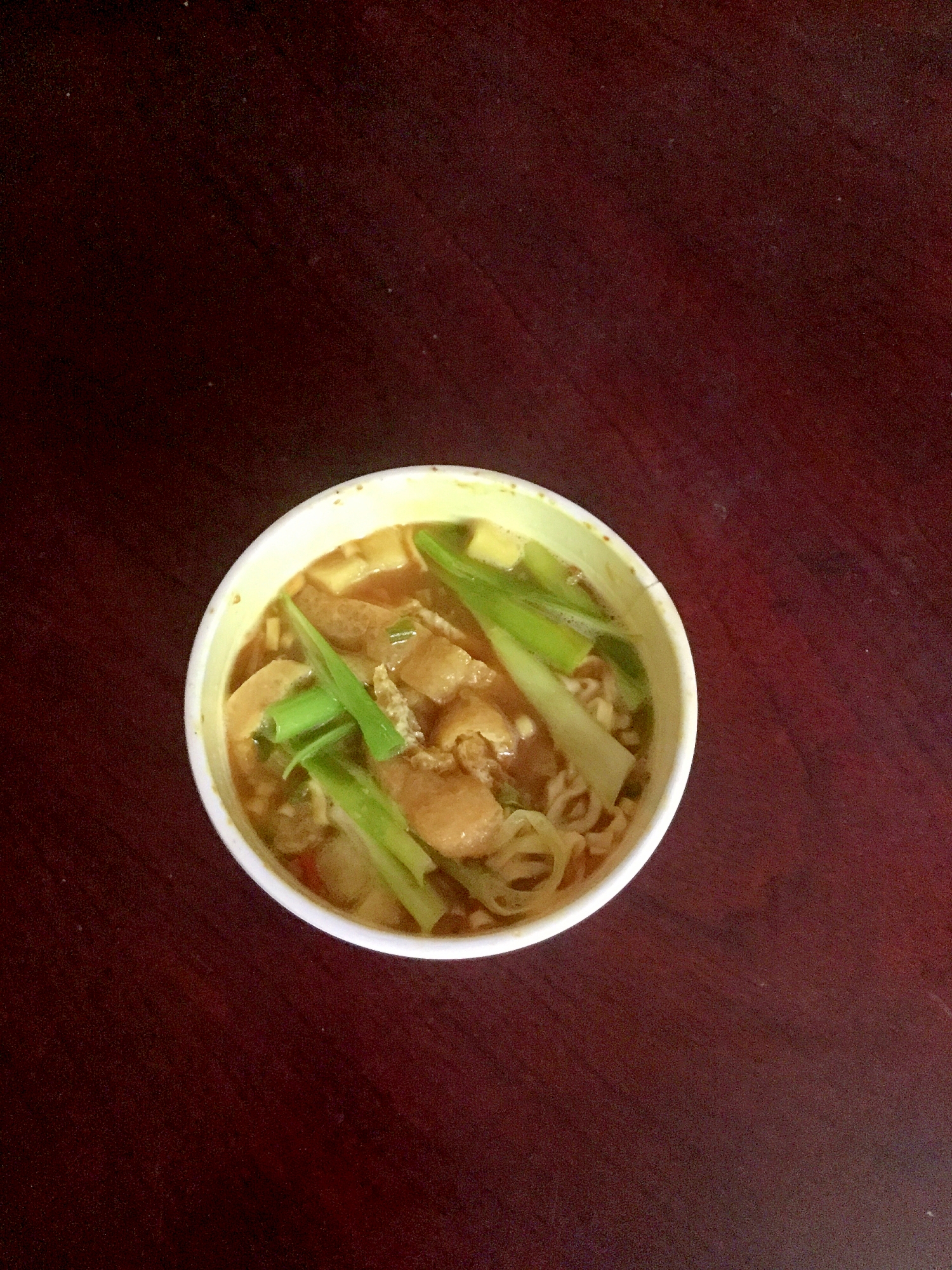 カップヌードルカレーきつねアレンジ 揚げとネギ レシピ 作り方 By とりあえず乾杯 楽天レシピ
